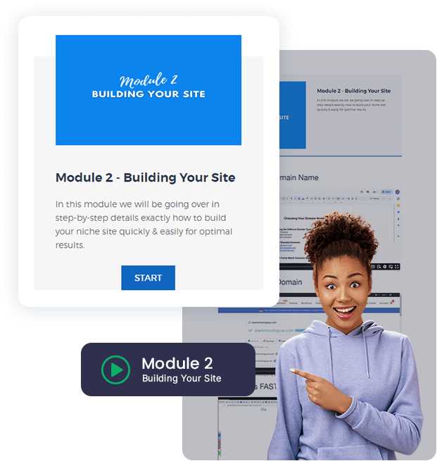 Of course we can’t guarantee any results because we have no idea how quickly you will consume the course and how quickly you’ll put it into action. However, when following the EXACT steps laid out in our course and setting everything up in a matter of days, our sites have been averaging to make its first commission within 3 weeks!