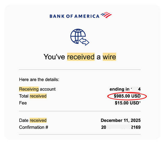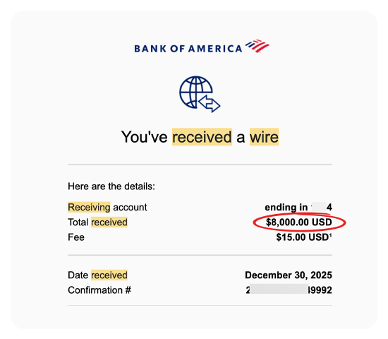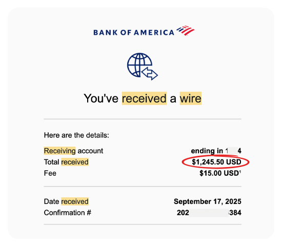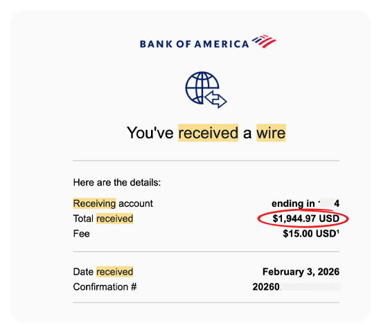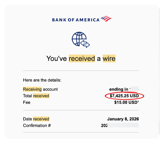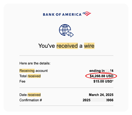Here are REAL screenshots of wire transfers, Stripe payments, PayPal invoices, and bank deposits from clients we've helped with AEO and related services.
