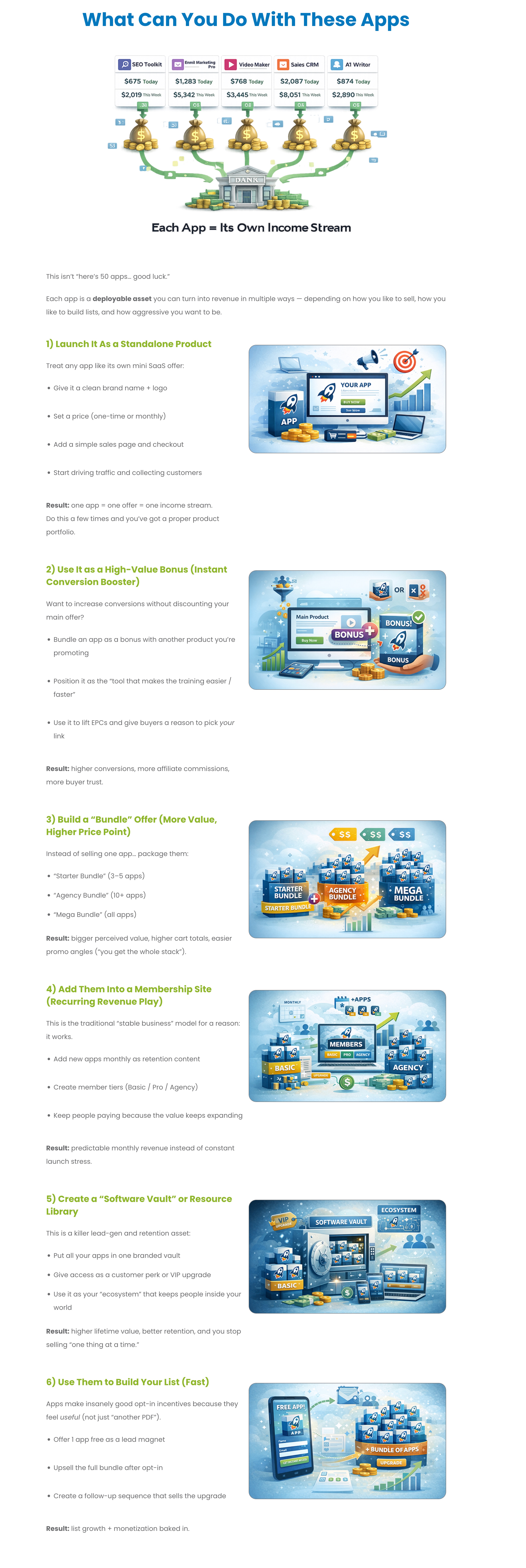 Get INSTANT Access to 50+ PreBuild Apps You Can Start Selling Under YOUR Brand Right Away - With ALL Sales Materials INCLUDED At a ONE-Time Price